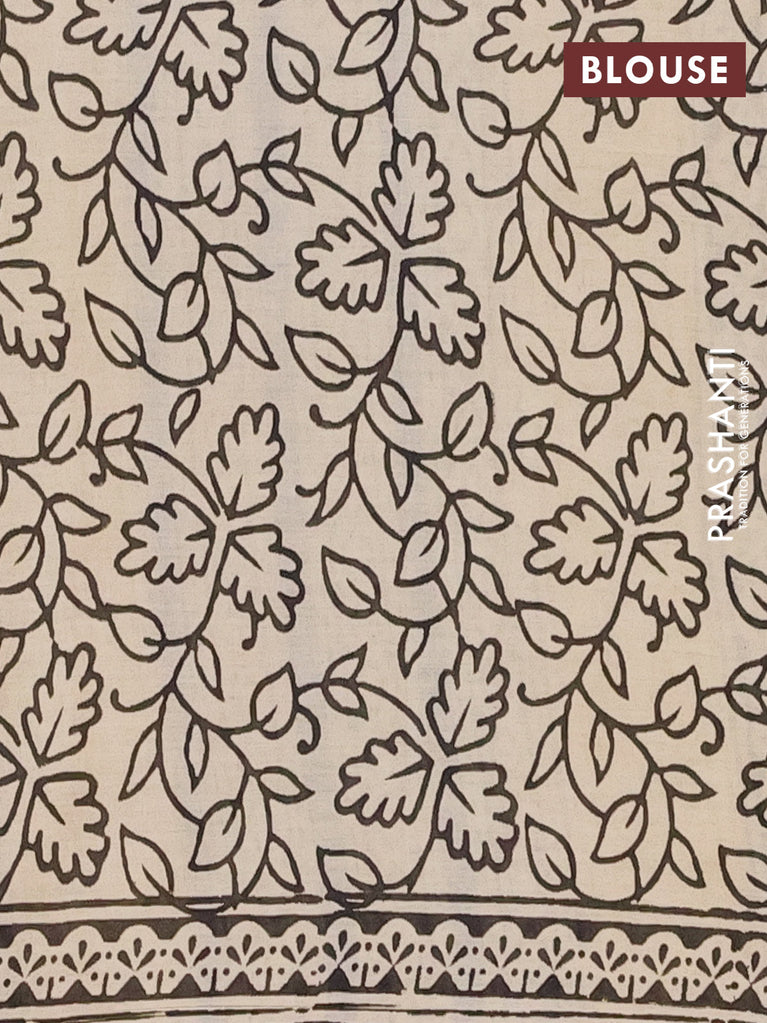 Jaipur cotton saree beige and black with allover kalamkari prints and printed border
