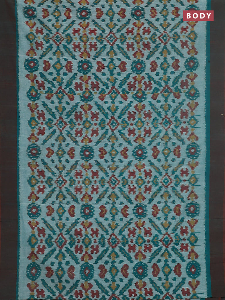 Ikat cotton saree teal green and broon with allover ikat butta weaves and simple border