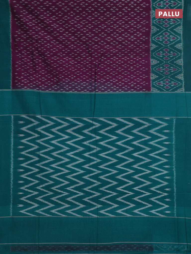 Ikat cotton saree purple and teal green with allover ikat butta weaves and simple border