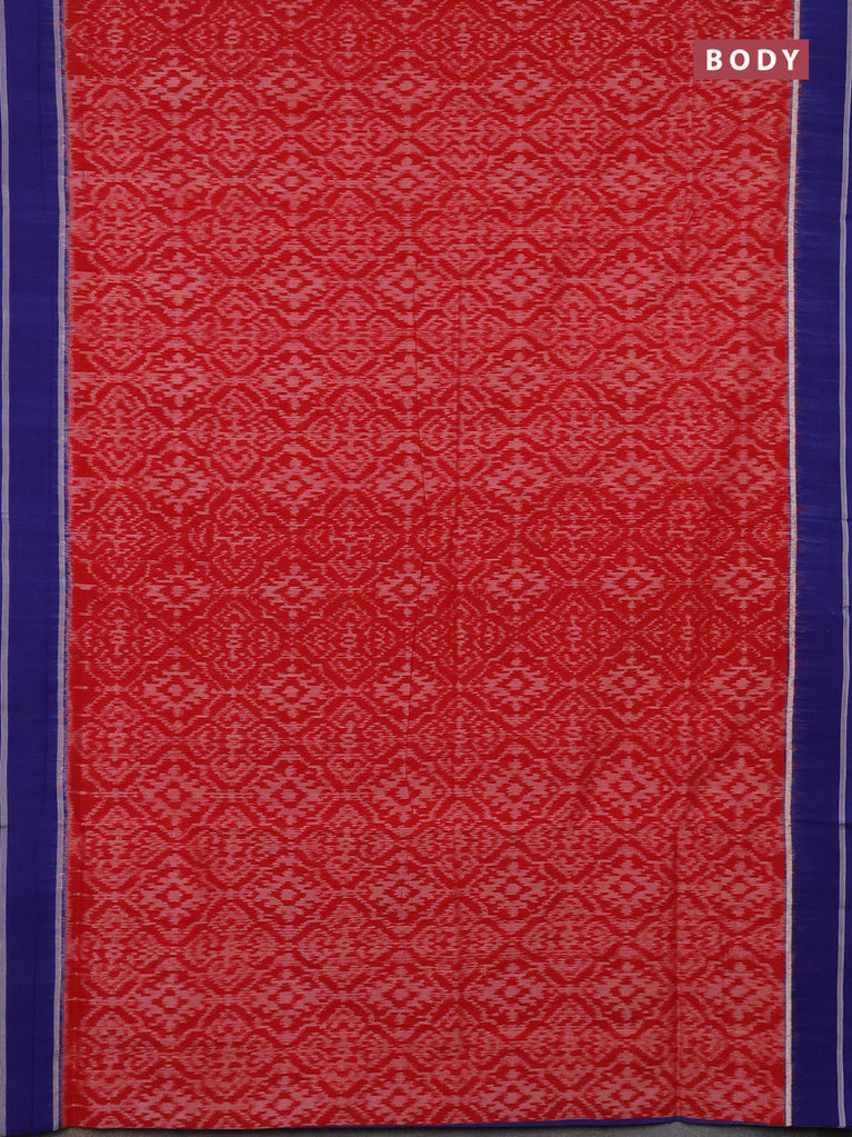 Ikat cotton saree red and blue with allover ikat weaves and simple border