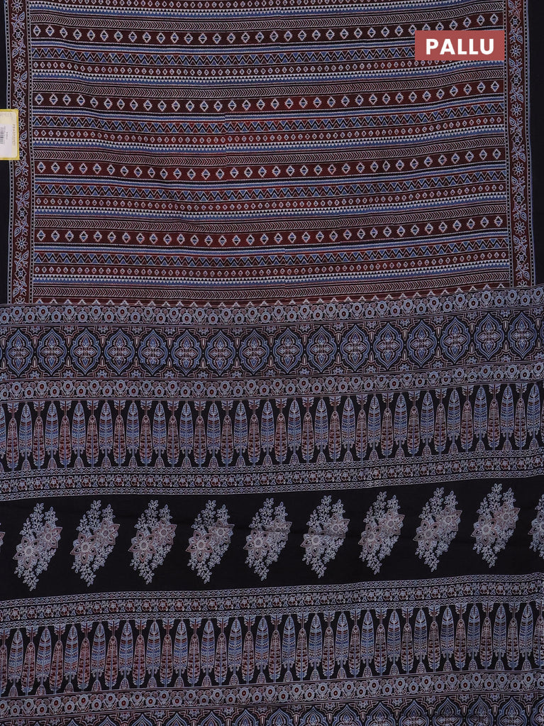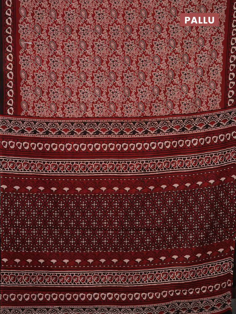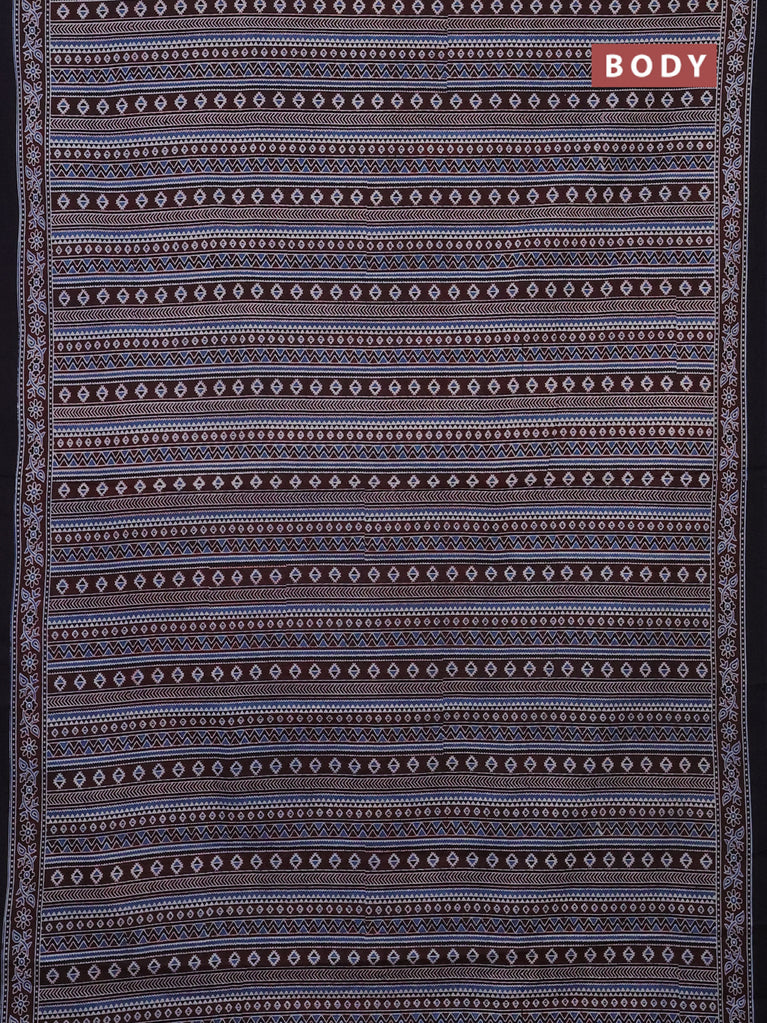 Jaipur cotton saree marron and dark navy blue with allover ajrakh prints and printed border