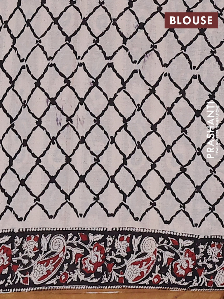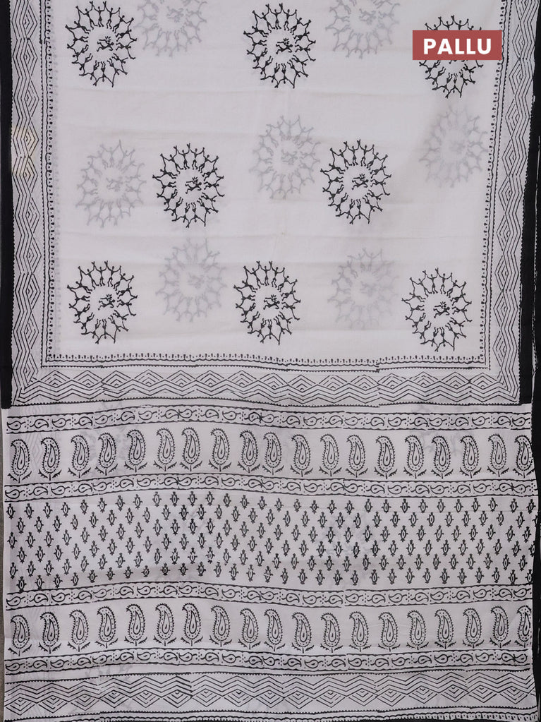 Jaipur cotton saree off white and black with elephant butta prints and printed border
