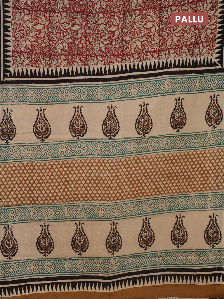 Jaipur cotton saree marron and off white with allover batik prints in borderless style