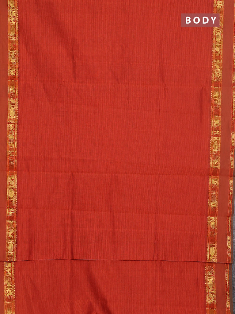 10 yards Poly cotton saree orange and green with plain body and rettapet zari woven border