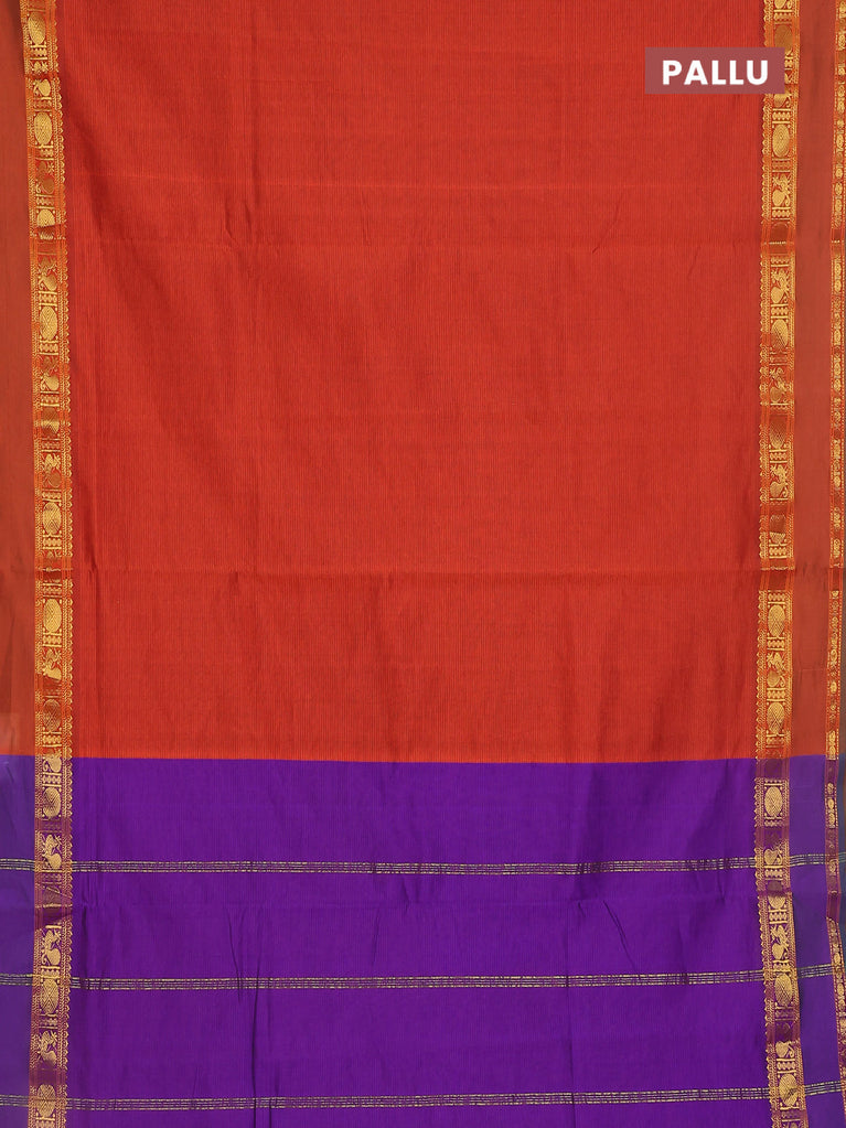 10 yards Poly cotton saree orange and violet with plain body and rettapet zari woven border