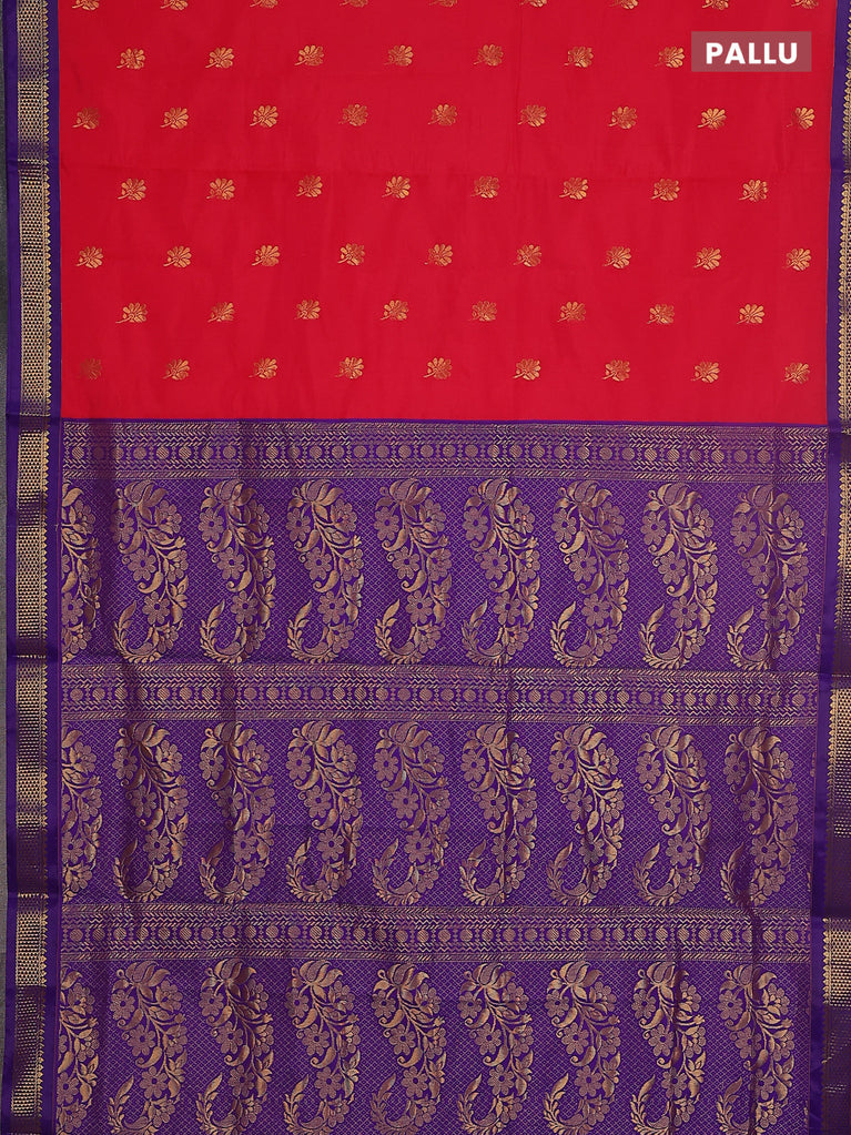 10 yards salem silk saree red and violet with zari woven buttas and zari woven border