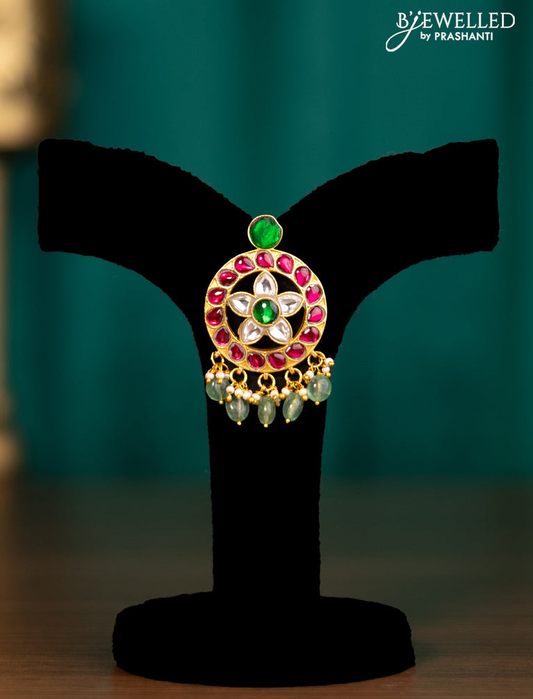 Antique pendant set chandbali design with kemp and cz stone and pearl hangings