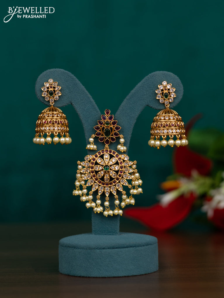 Antique pendant set floral design with kemp and cz stone and pearl hangings