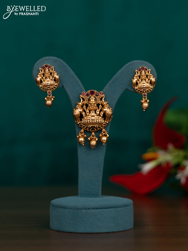 Antique pendant set lakshmi design with kemp & cz stones and golden beads hanging