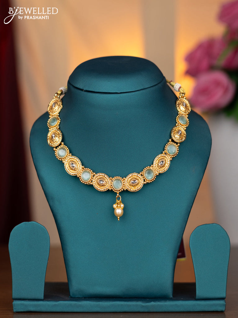 Antique necklace with mint green & cz stones and pearl hangings