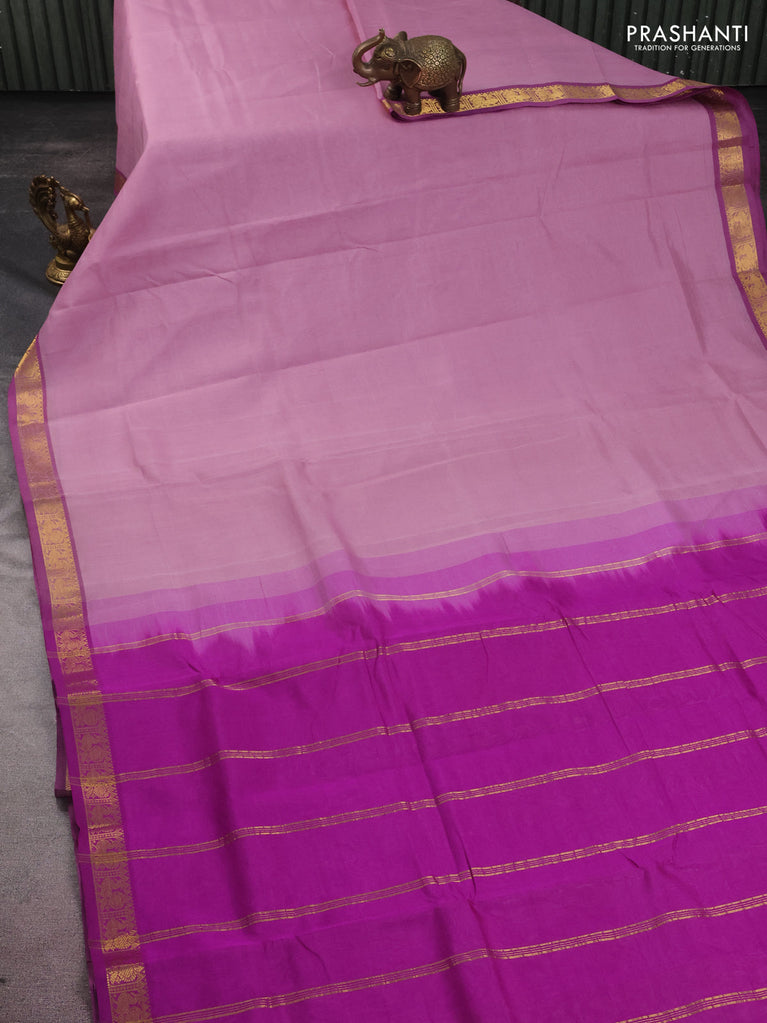 10 yards silk cotton saree pastel pink and purple with plain body and zari woven border