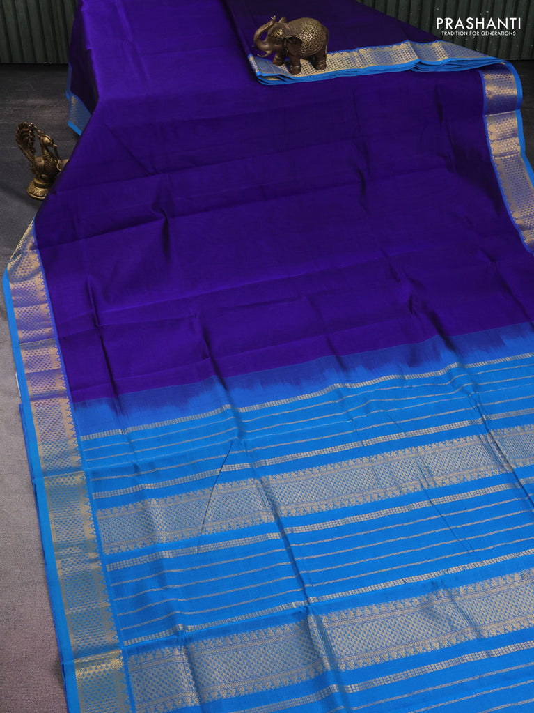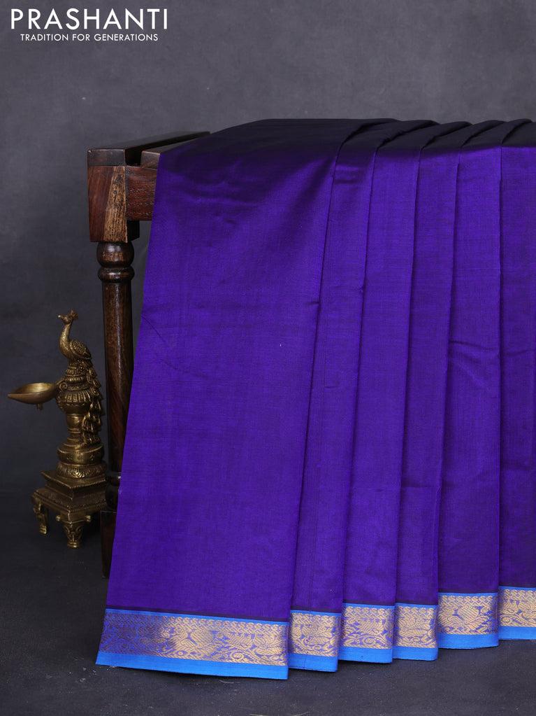 10 yards silk cotton saree navy blue and cs blue with plain body and zari woven border