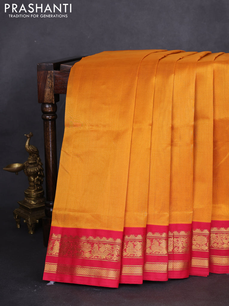 10 yards silk cotton saree mustard shade and red with plain body and zari woven border