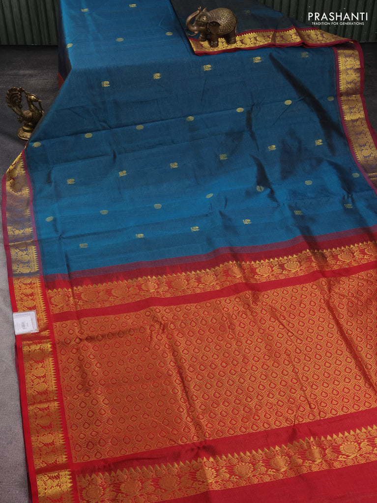 10 yards silk cotton saree peacock green and maroon with allover vairaosi pattern & zari buttas and zari woven border