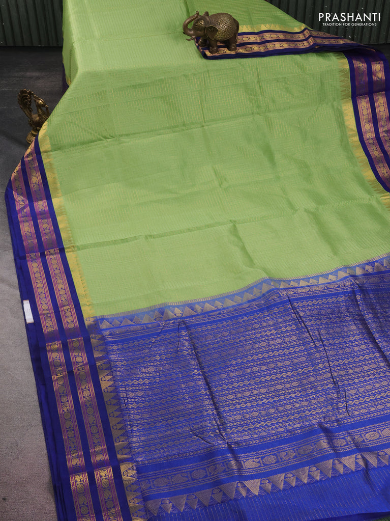 10 yards silk cotton saree pista green and blue with allover small zari checks and zari woven border
