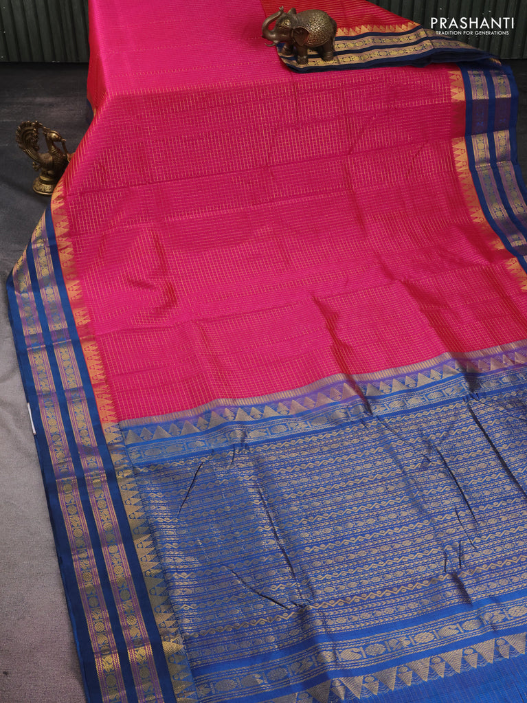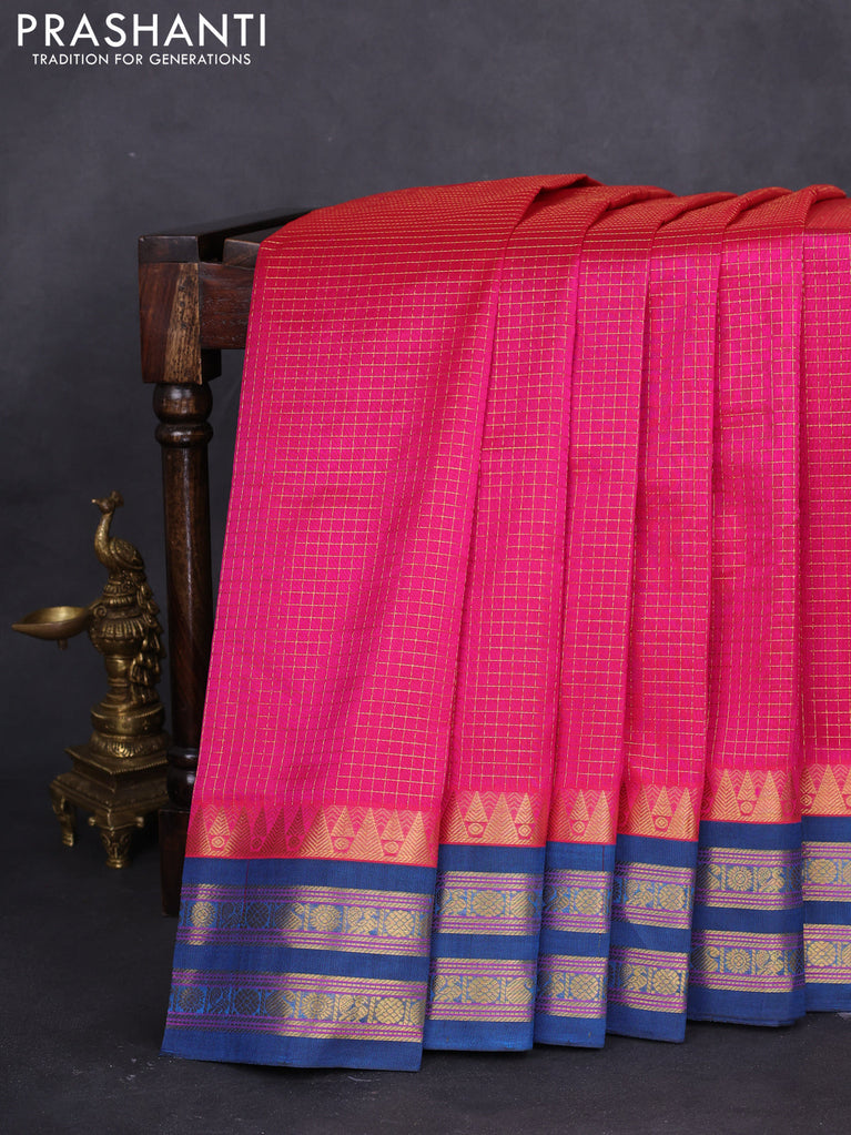 10 yards silk cotton saree pink and cs blue with allover small zari checks and rettapet zari woven border