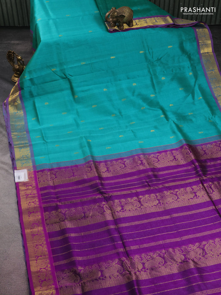 10 yards silk cotton saree teal green and purple with zari woven buttas and zari woven border