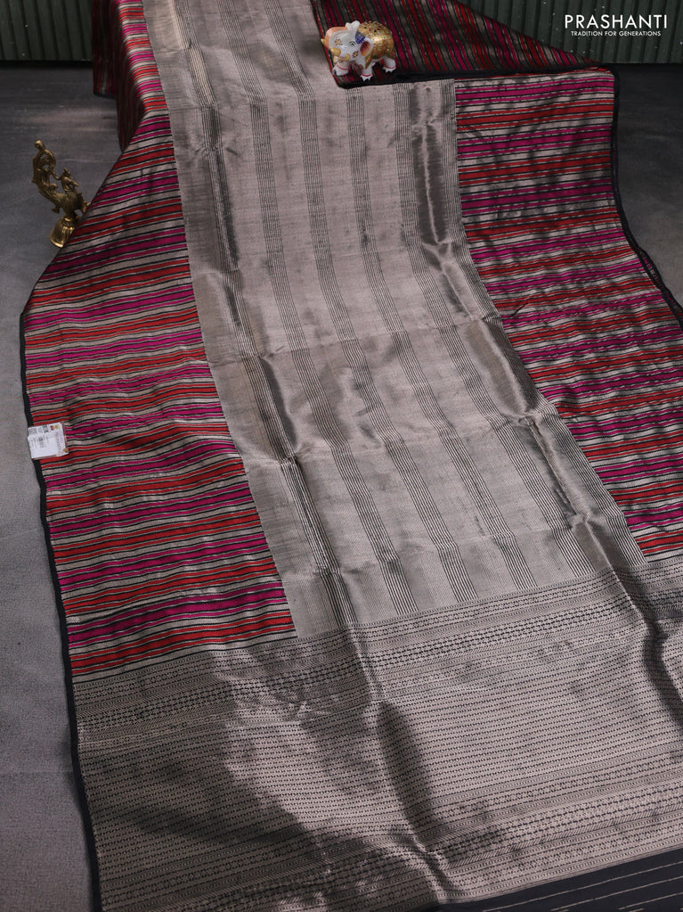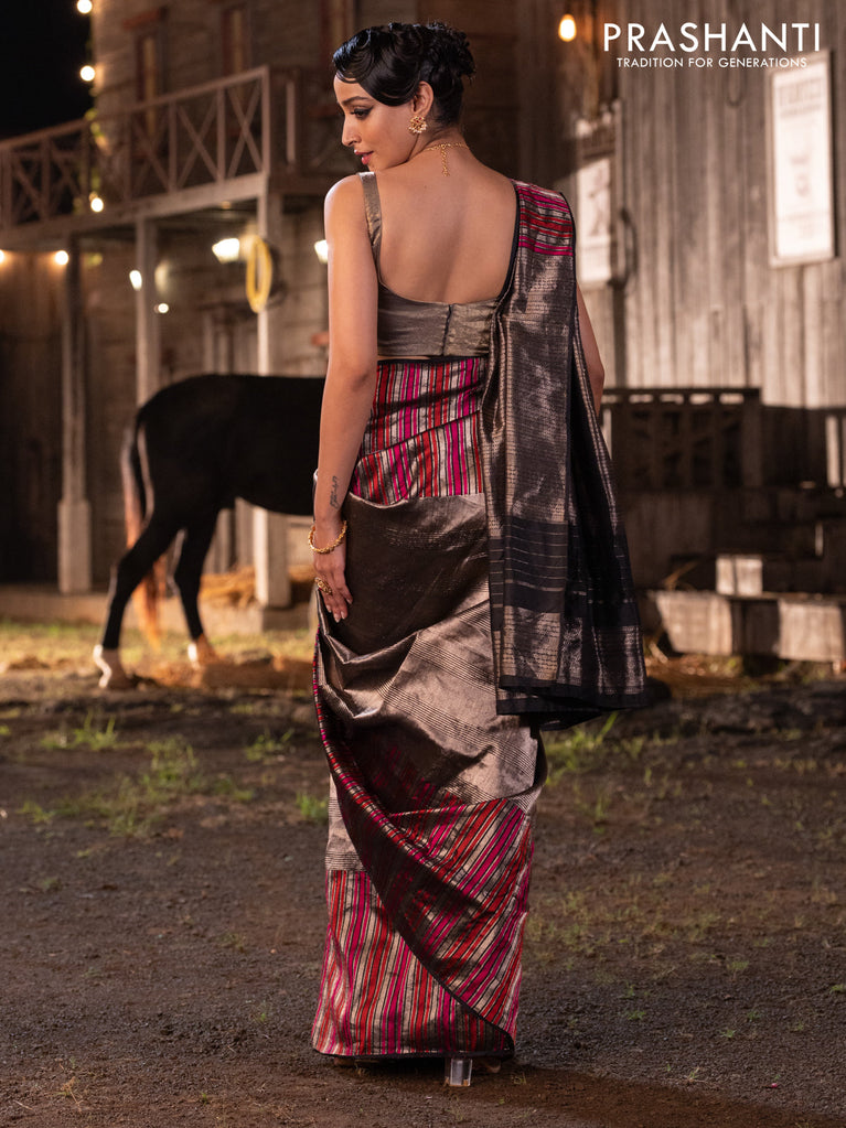 Banarasi katan tissue silk saree black with allover zari weaves and long thread & zari woven border