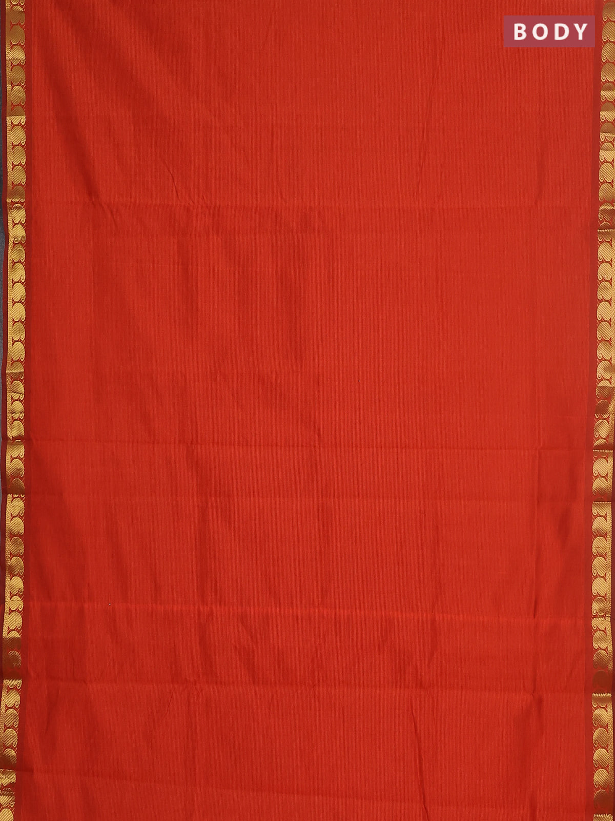 10 yards Poly cotton saree orange and green with plain body and zari woven border