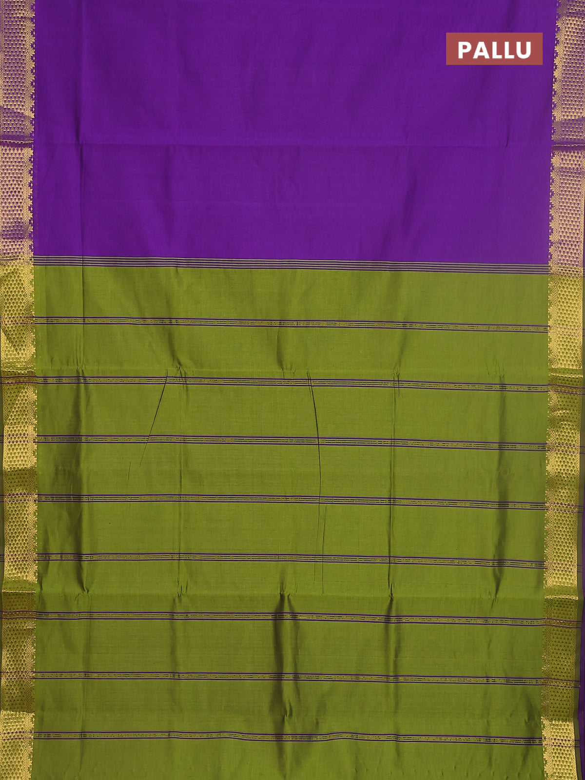 10 yards Poly cotton saree violet and light green with plain body and zari woven border