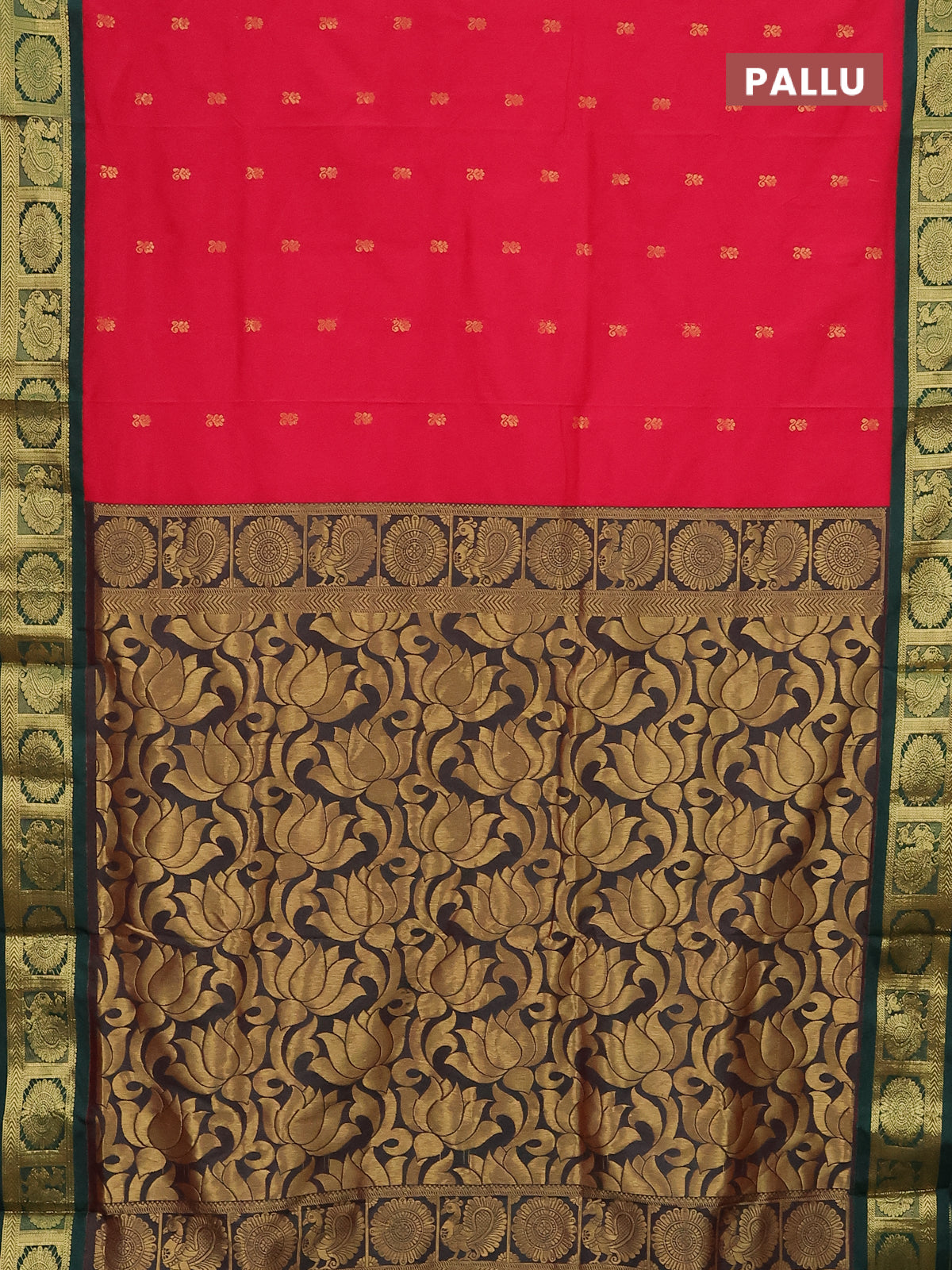 10 Yards salem silk saree reddish pink and green with zari woven buttas and zari woven korvai border