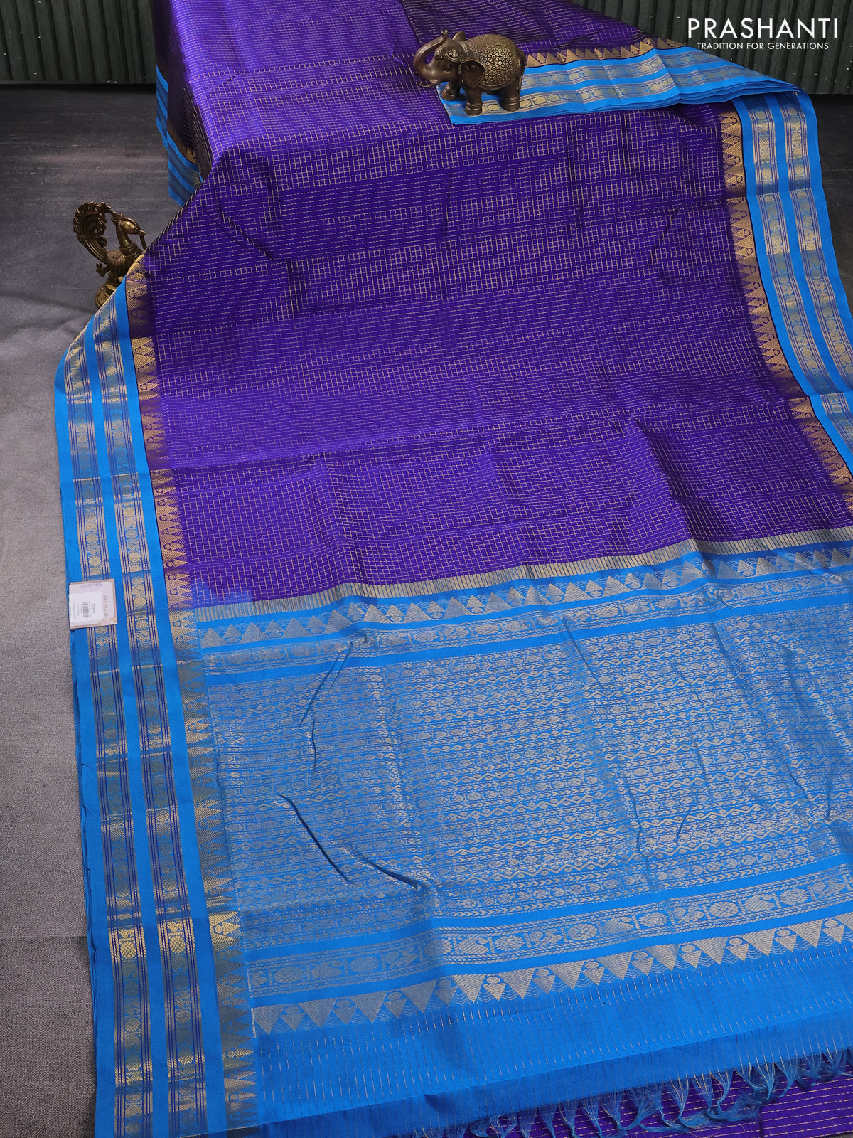 10 Yards silk cotton saree blue and cs blue with allover small zari checked pattern and zari woven border