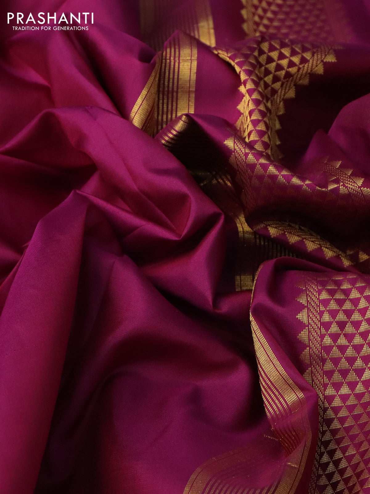 10 Yards silk saree deep purple and dark green with plain body and zari woven border