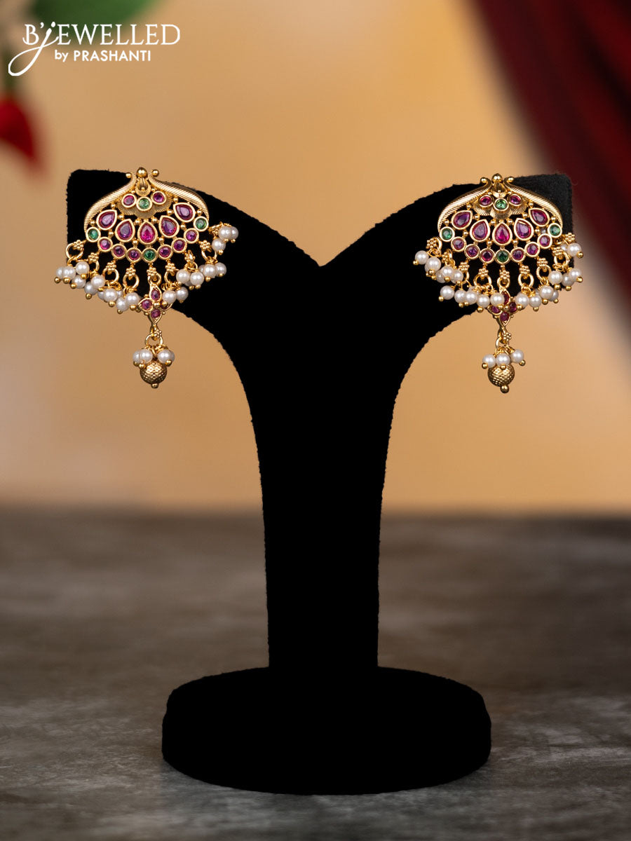 Antique attigai necklace with kemp stones and pearl & golden beads hangings