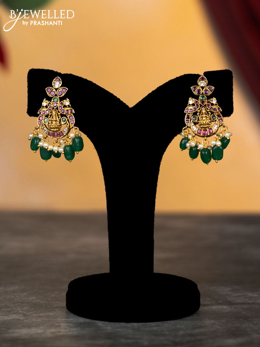 Antique changable pendant haram manga pattern with kemp & cz stones and pearl & green beads hangings