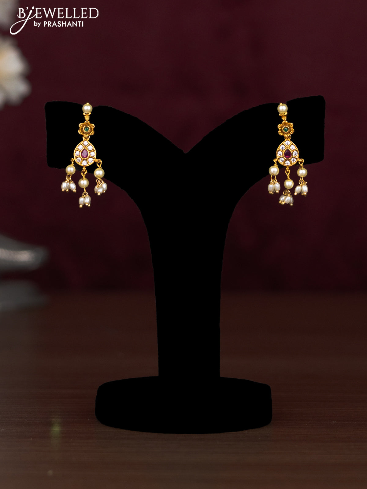 Antique guttapusalu necklace floral design with kemp & cz stones and pearl hangings