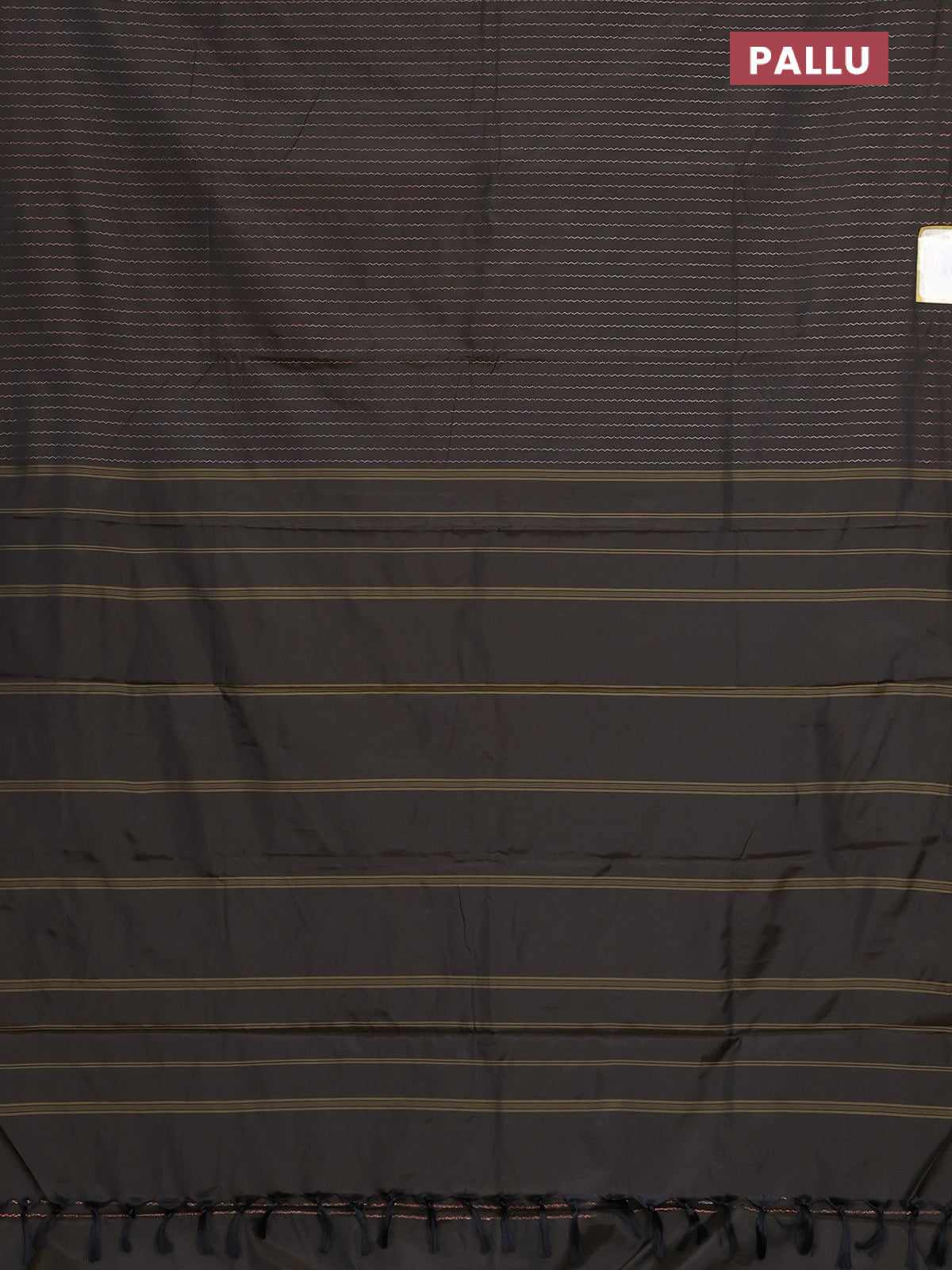 Arani semi silk saree deep coffee brown with allover copper zari weaves in borderless style