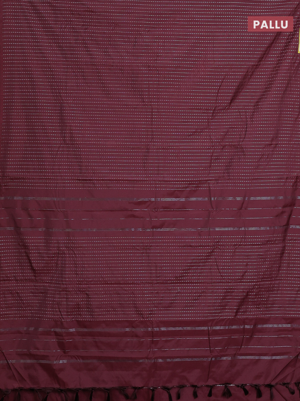 Arani semi silk saree deep maroon with allover silver zari weaves in borderless style