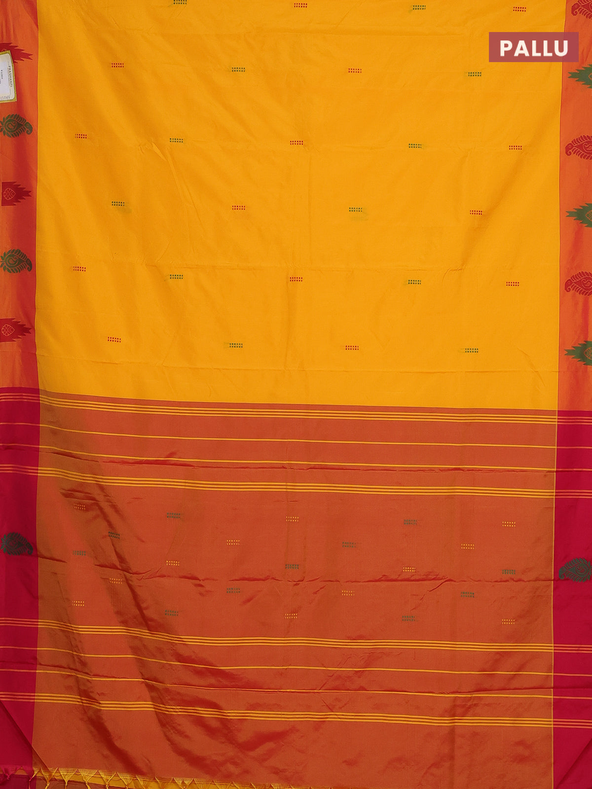 Arani semi silk saree mango yellow and dual shade of pink with thread woven buttas and thread woven butta border