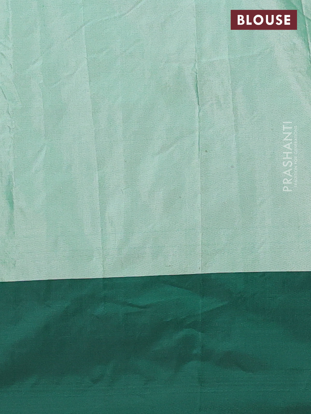 Arani semi silk saree pastel green and green with allover silver & gold zari weaves and woven border