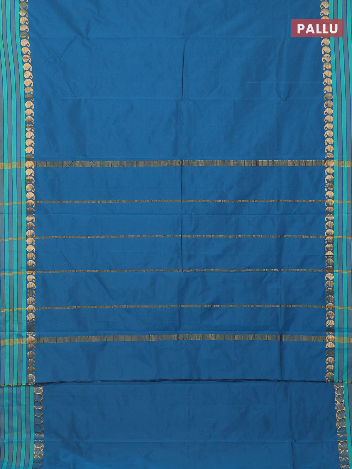 Arani semi silk saree peacock blue and teal green with plain body and paisley zari woven simple border