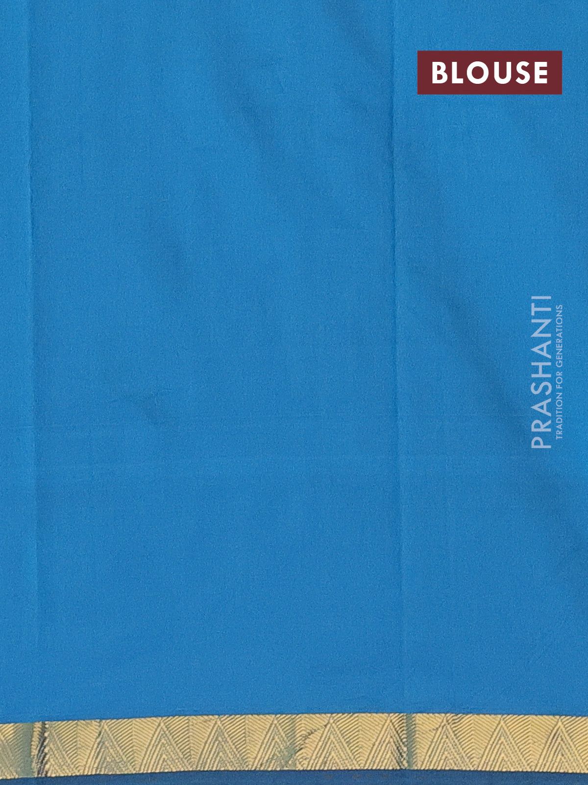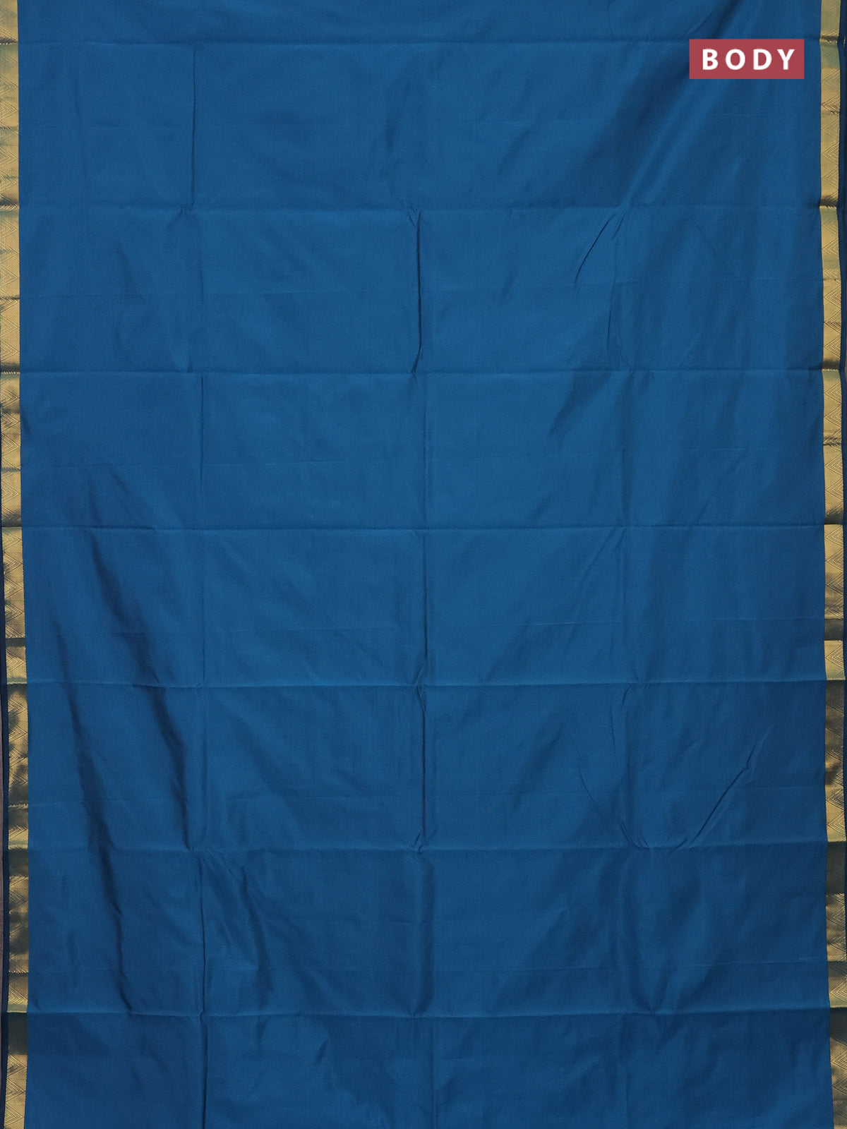 Arani semi silk saree peacock blue with plain body and zari woven border