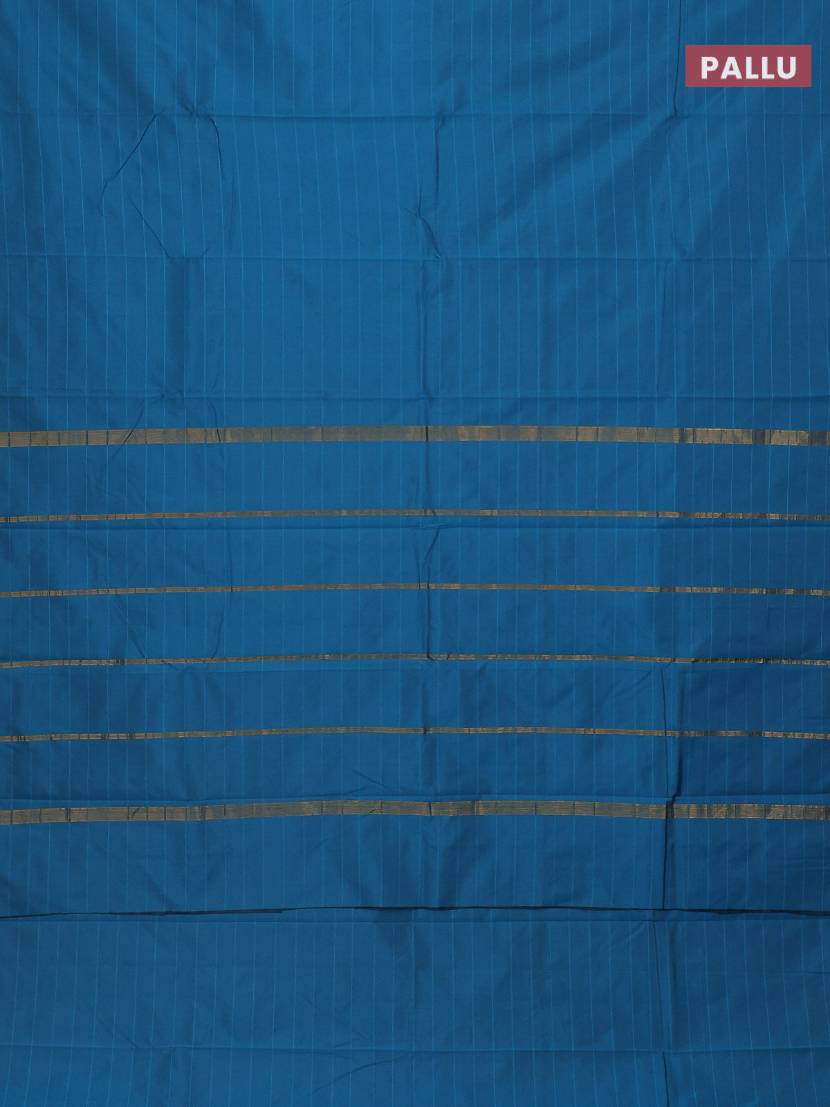 Arani semi silk saree peacock blue with plain body and zari woven border