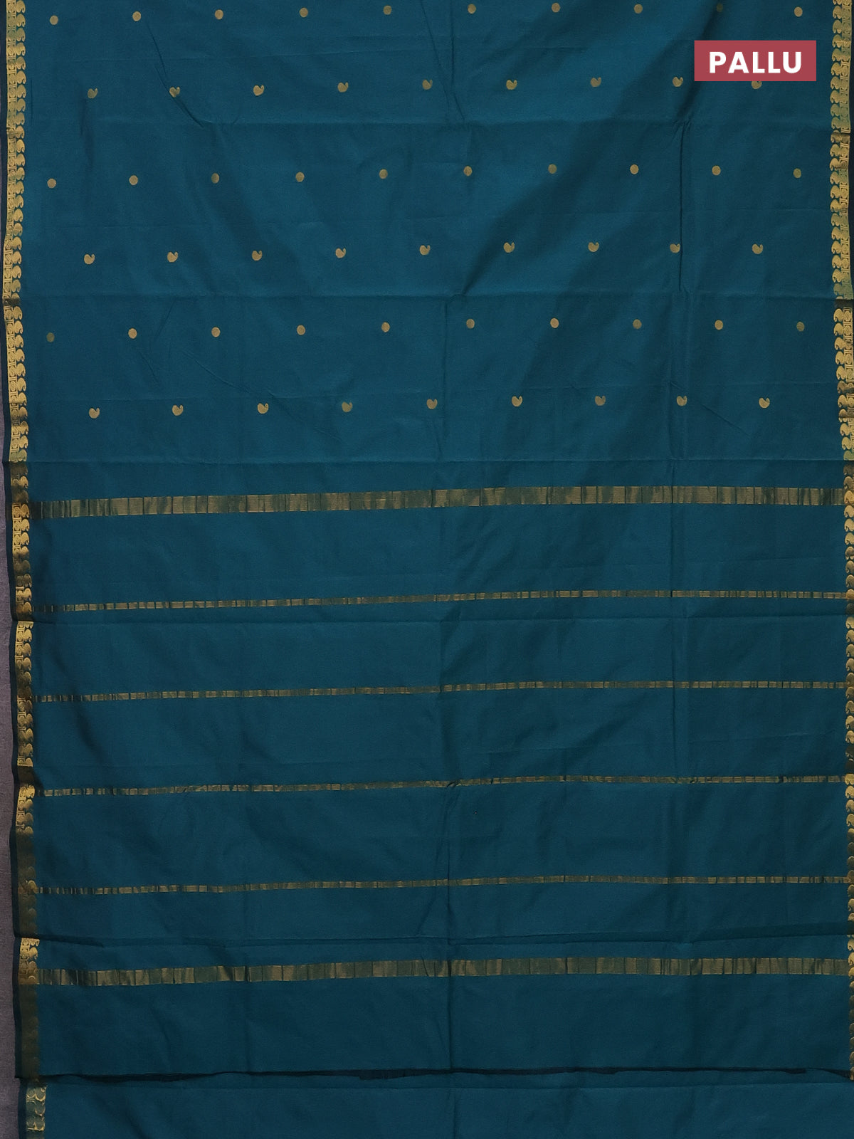 Arani semi silk saree peacock green with rudhraksha & paisley zari woven buttas and zari woven border