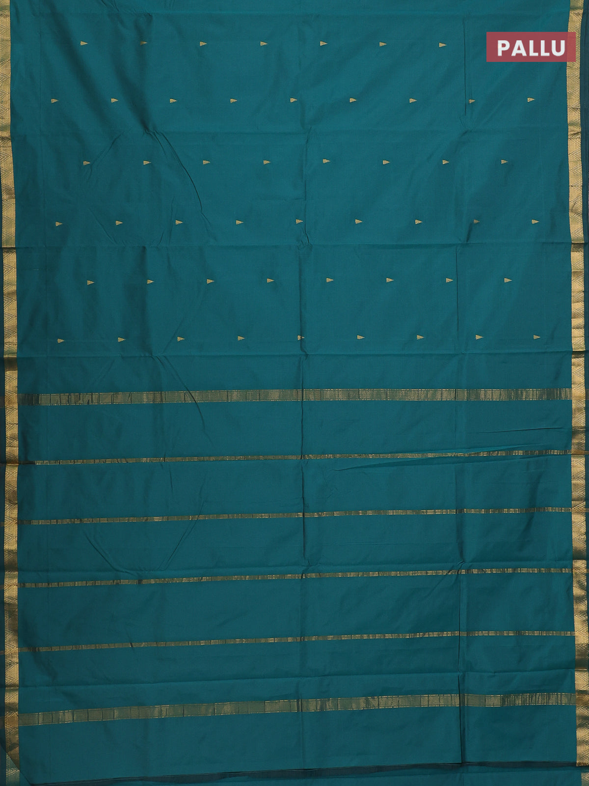 Arani semi silk saree peacock green with zari woven temple buttas and zari woven border