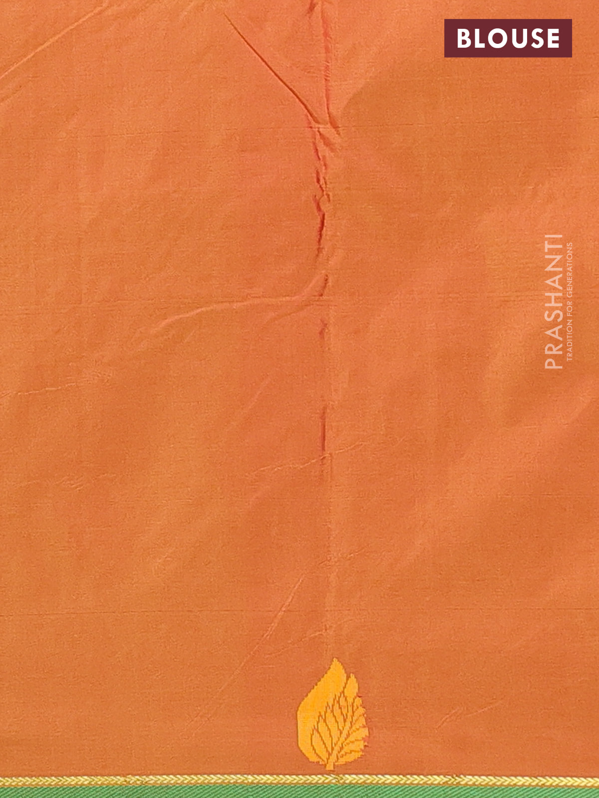 Arani semi silk saree sap green and dual shade of yellowish pink with thread woven buttas and thread woven butta border