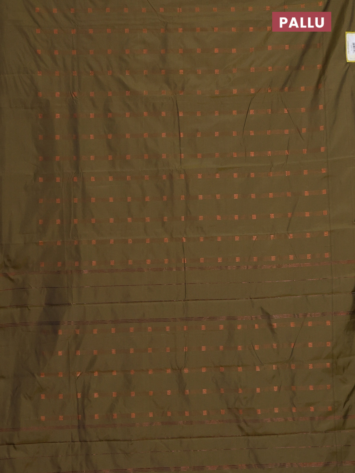 Arani semi silk saree sap green with copper zari woven buttas in borderless style
