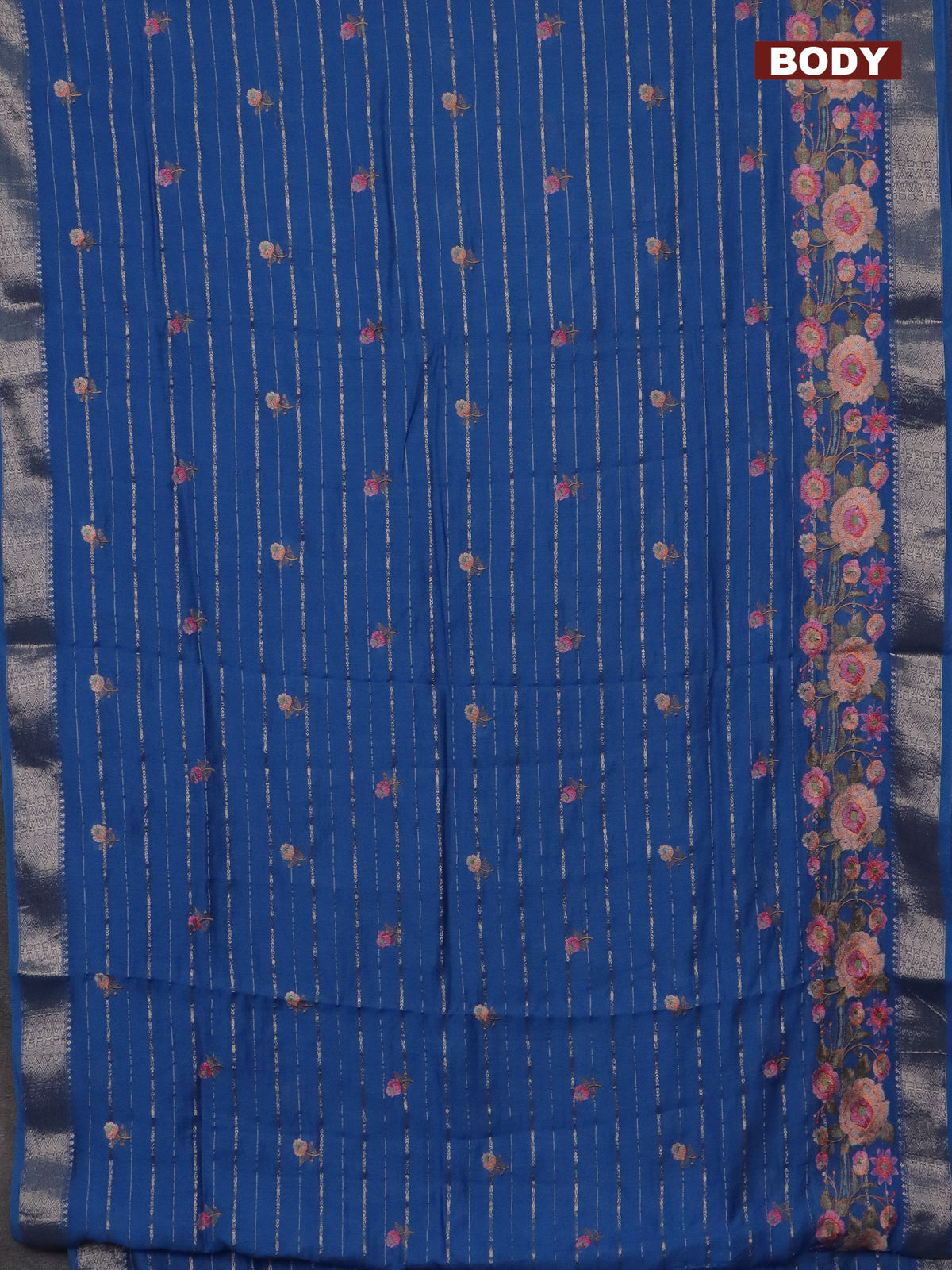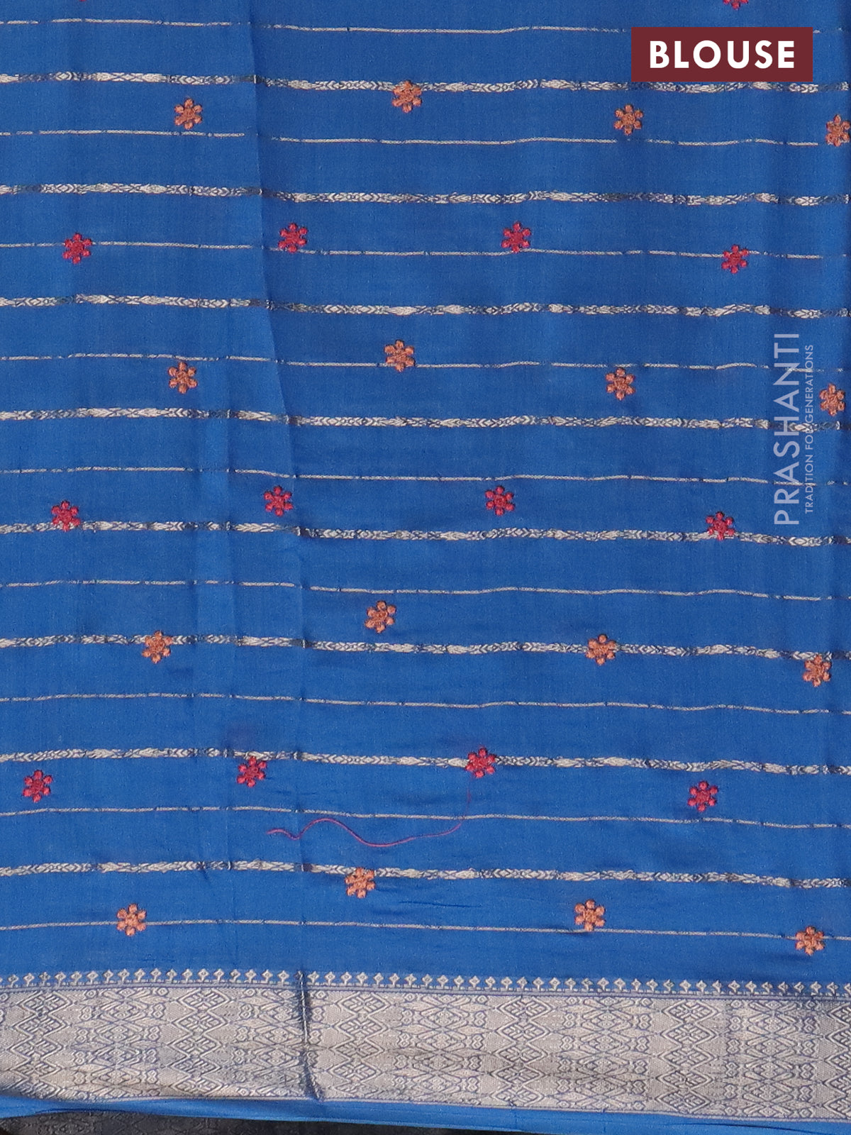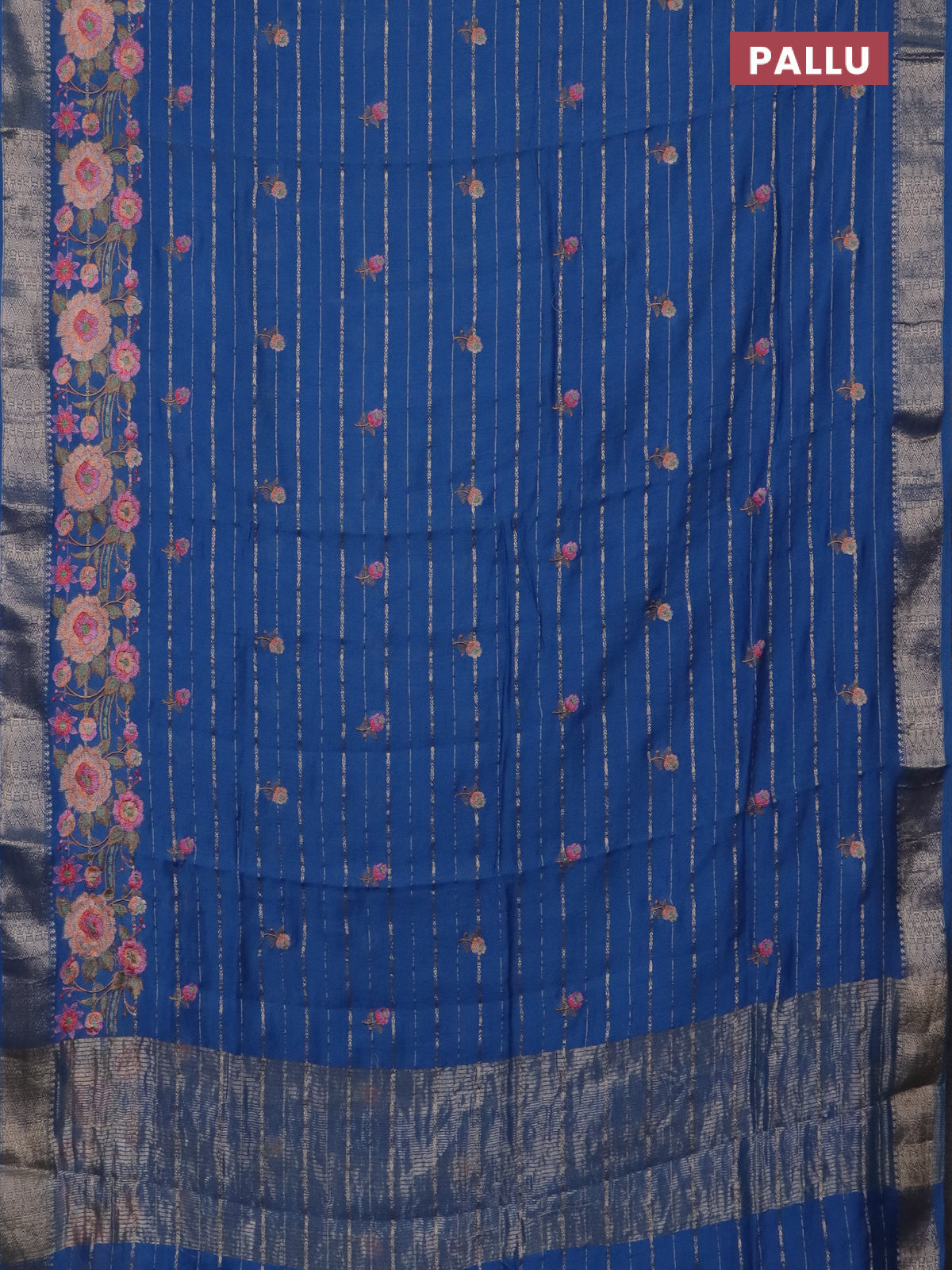 Assam silk saree cs blue with allover zari weaves & floral embroidery work buttas and zari woven border