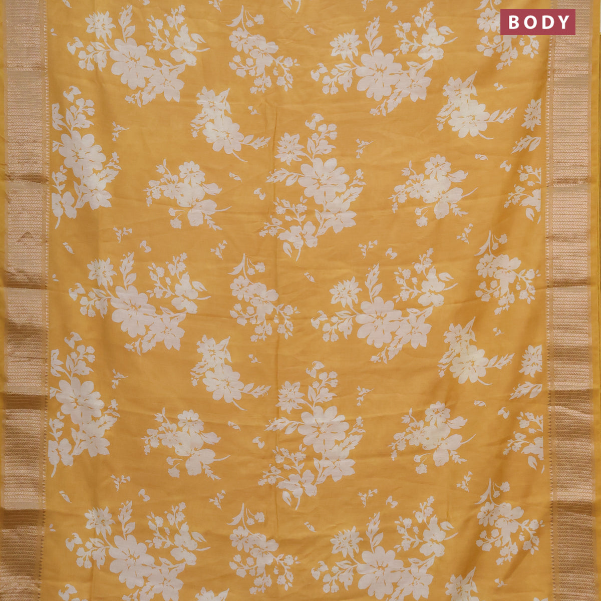 Assam silk saree mustard yellow with allover floral prints and zari woven border