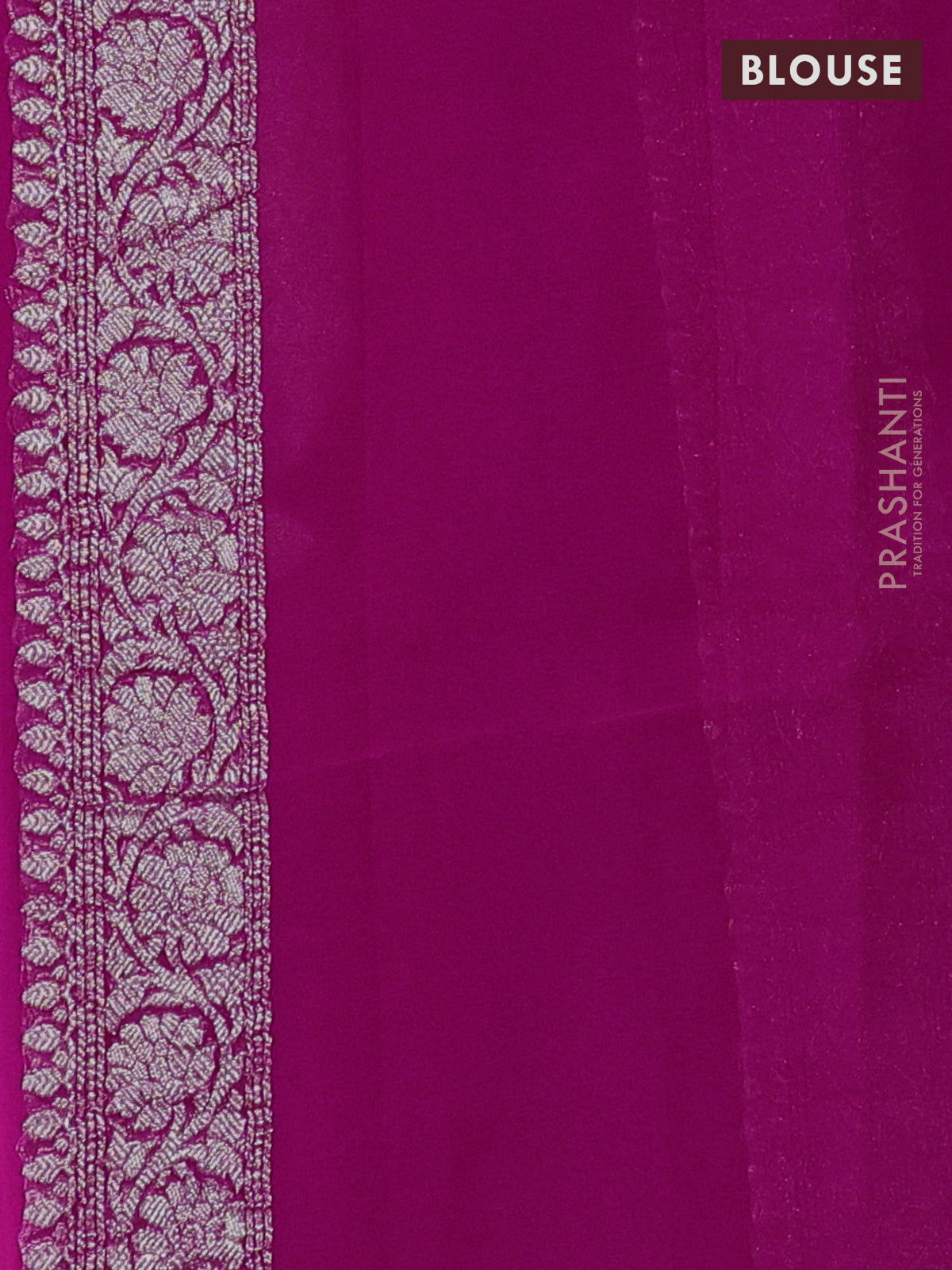 Banarasi chiffon silk saree magenta pink with silver zari woven buttas and floral silver zari woven border