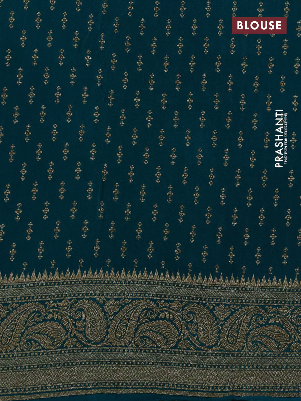Banarasi crepe saree pink and brown teal with allover thread & zari weaves and woven border