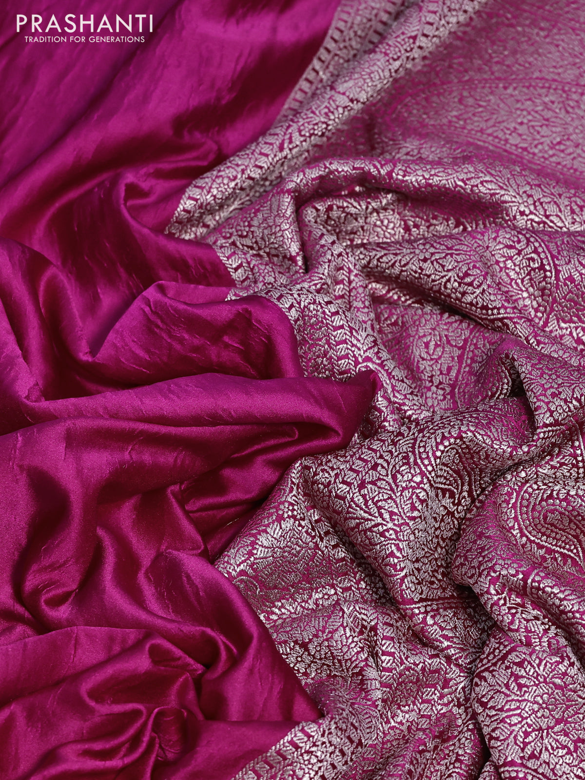 Banarasi crush crepe saree pink with plain body and zari woven border