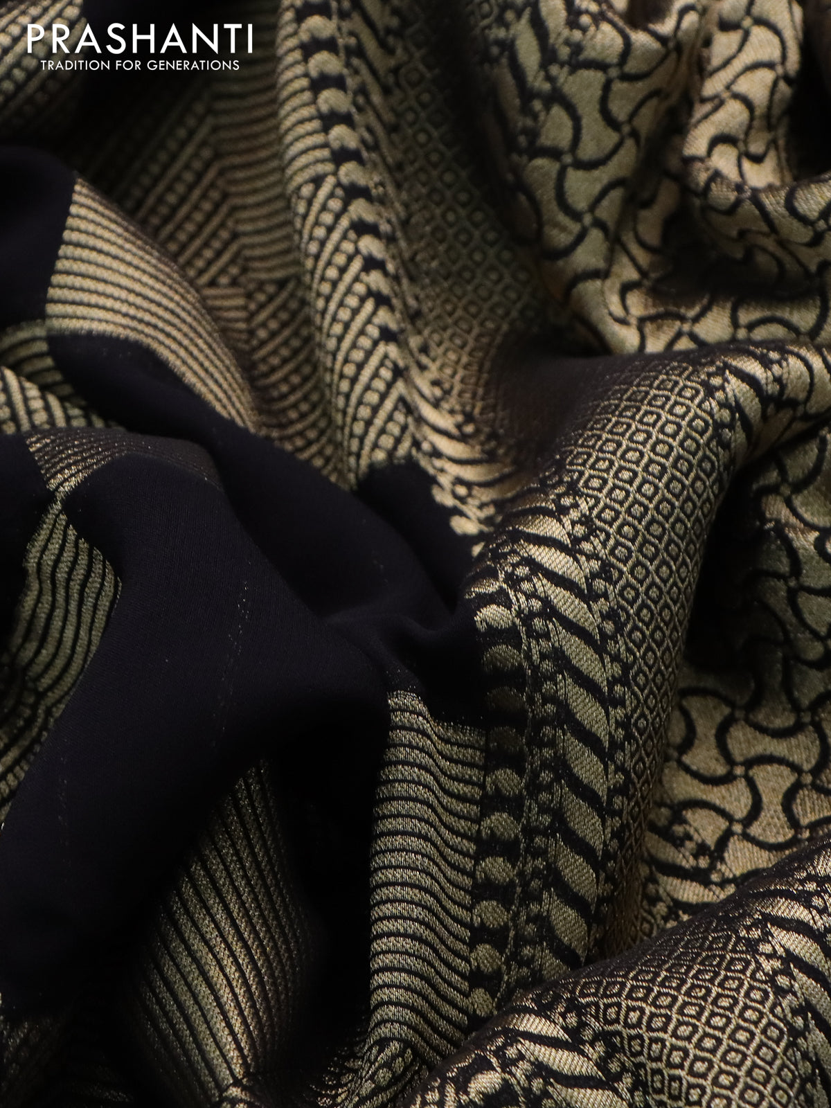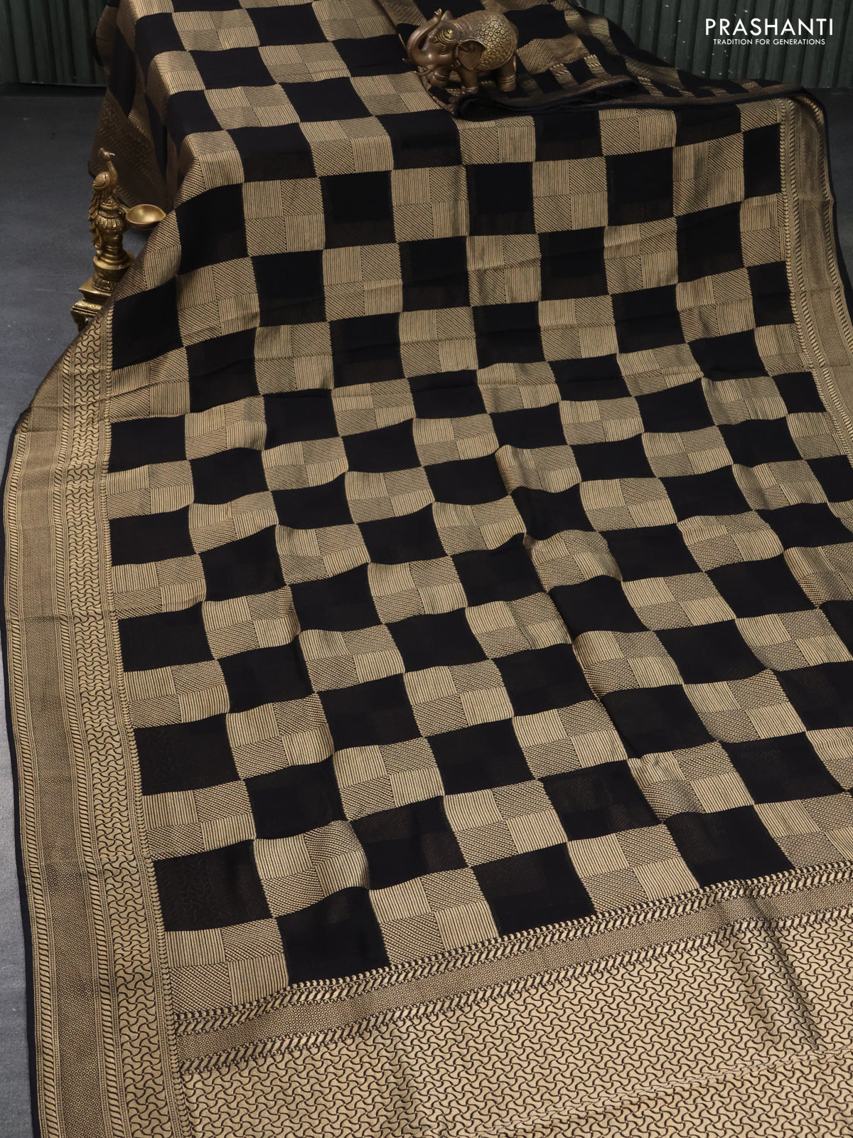 Banarasi georgette saree black with allover geometric zari weaves and zari woven border