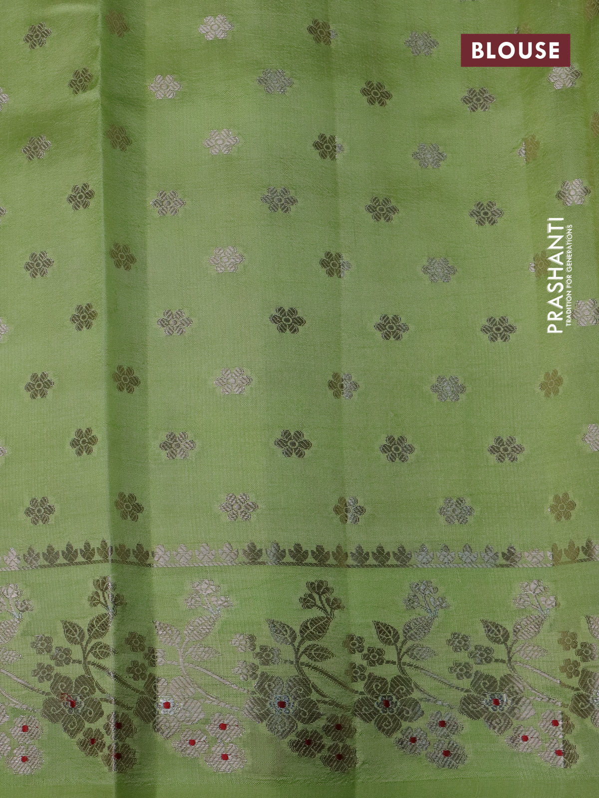 Banarasi poona silk saree green and light green with allover zari weaves and zari woven border