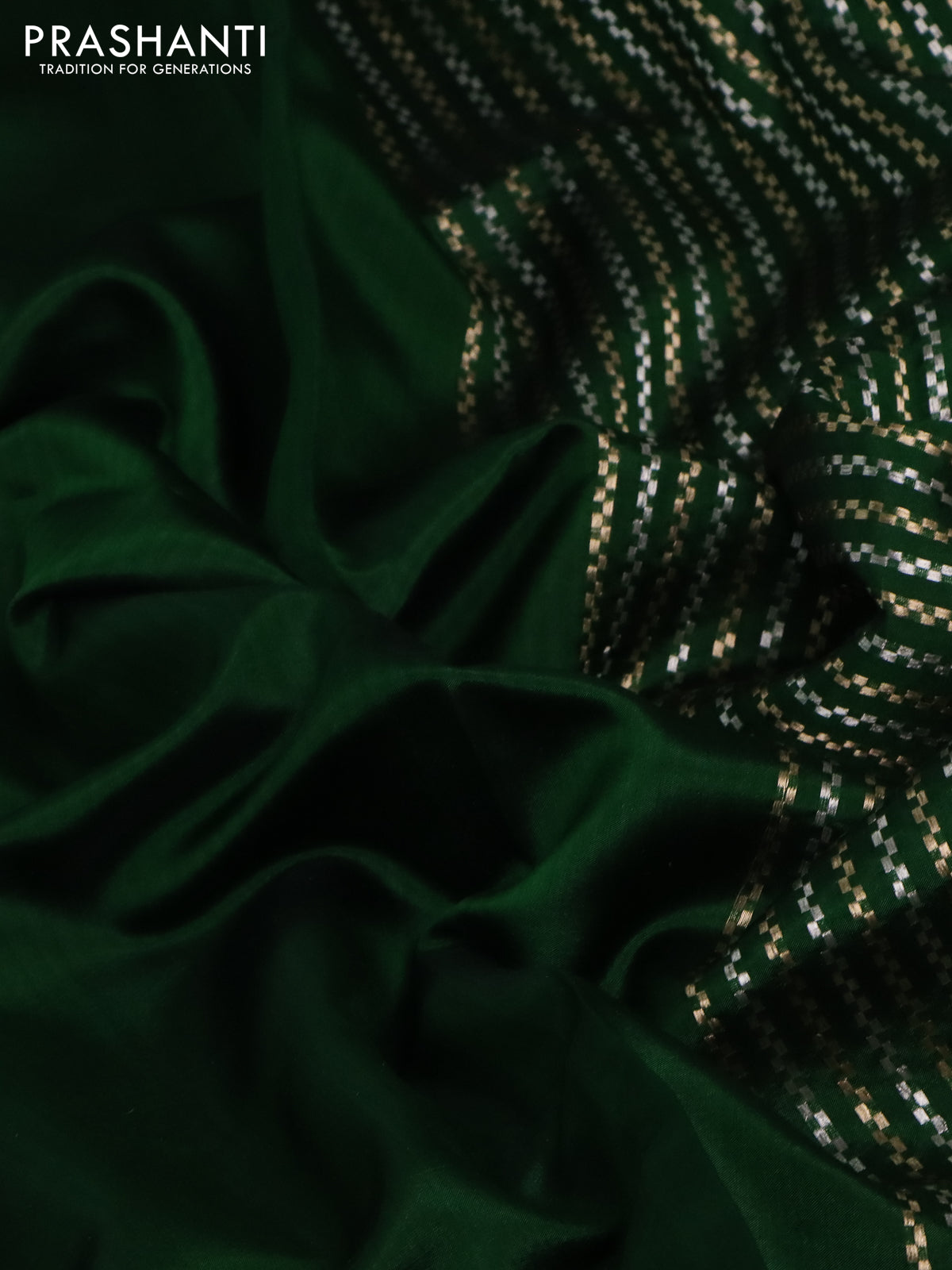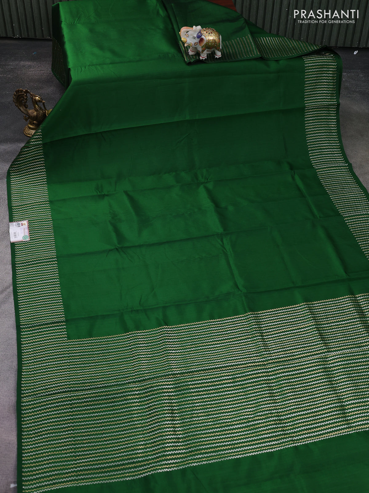 Banarasi poona silk saree green with plain body and zari woven border