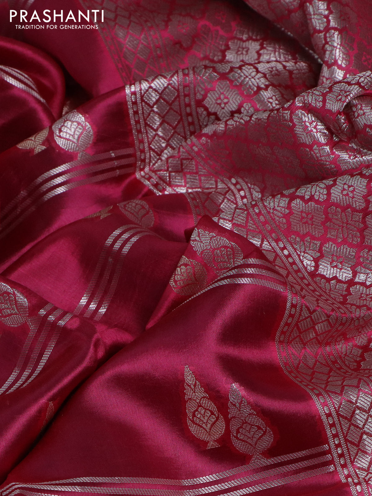 Banarasi poona silk saree pink and peacock blue with silver & gold zari woven buttas and silver zari woven border